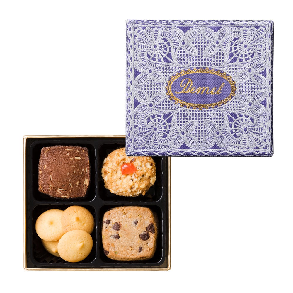 商品特長: デメル人気のクッキー4種を、可憐なレース模様の限定パッケージに詰め合わせました