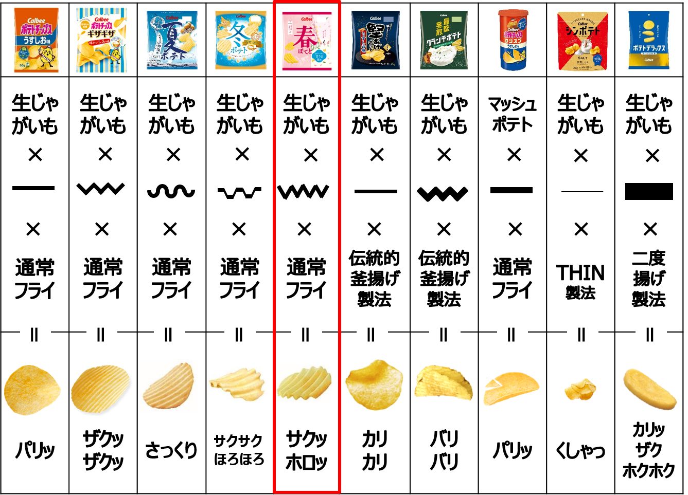 「カットの違いでこんなに変わる!カルビーの厚切りチップス ~春ぽてと~」