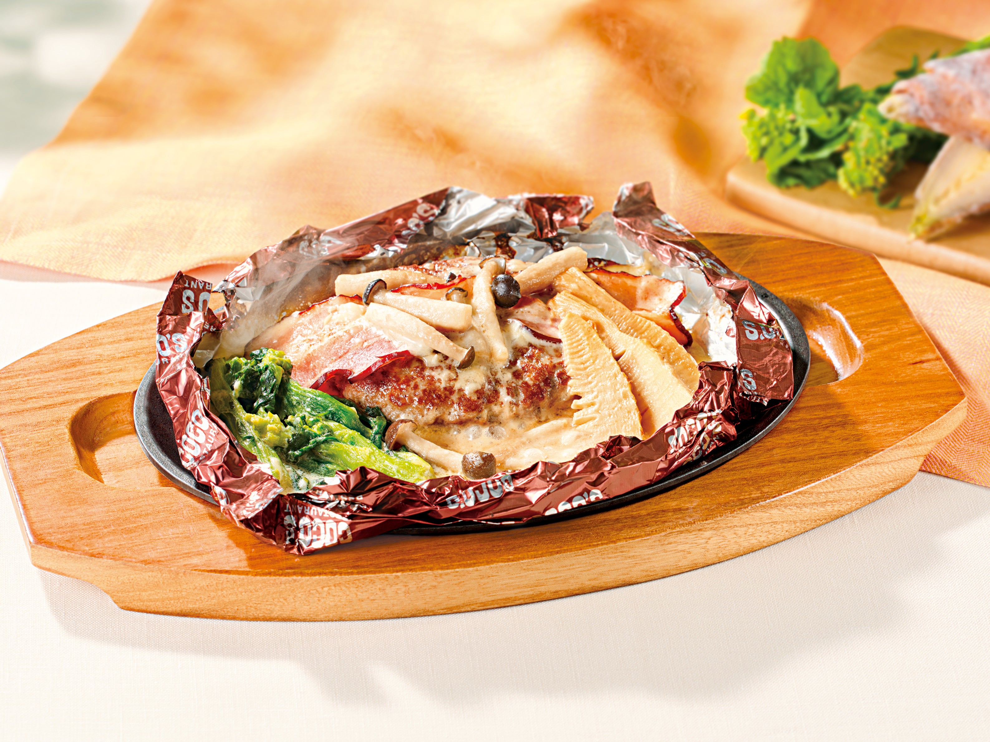 ※ 春野菜と燻製ベーコンのクリーム包み焼きハンバーグはテイクアウト対象商品です。