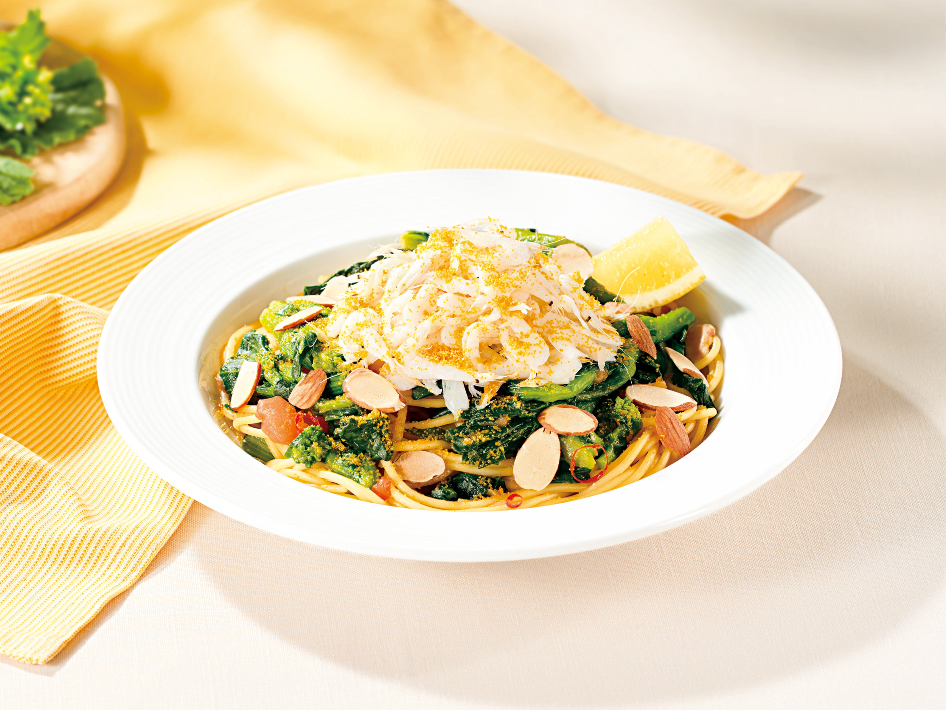 菜の花と釜揚げ白エビのパスタ~サルデーニャ産カラスミがけ~ 990円(税込1,089円)