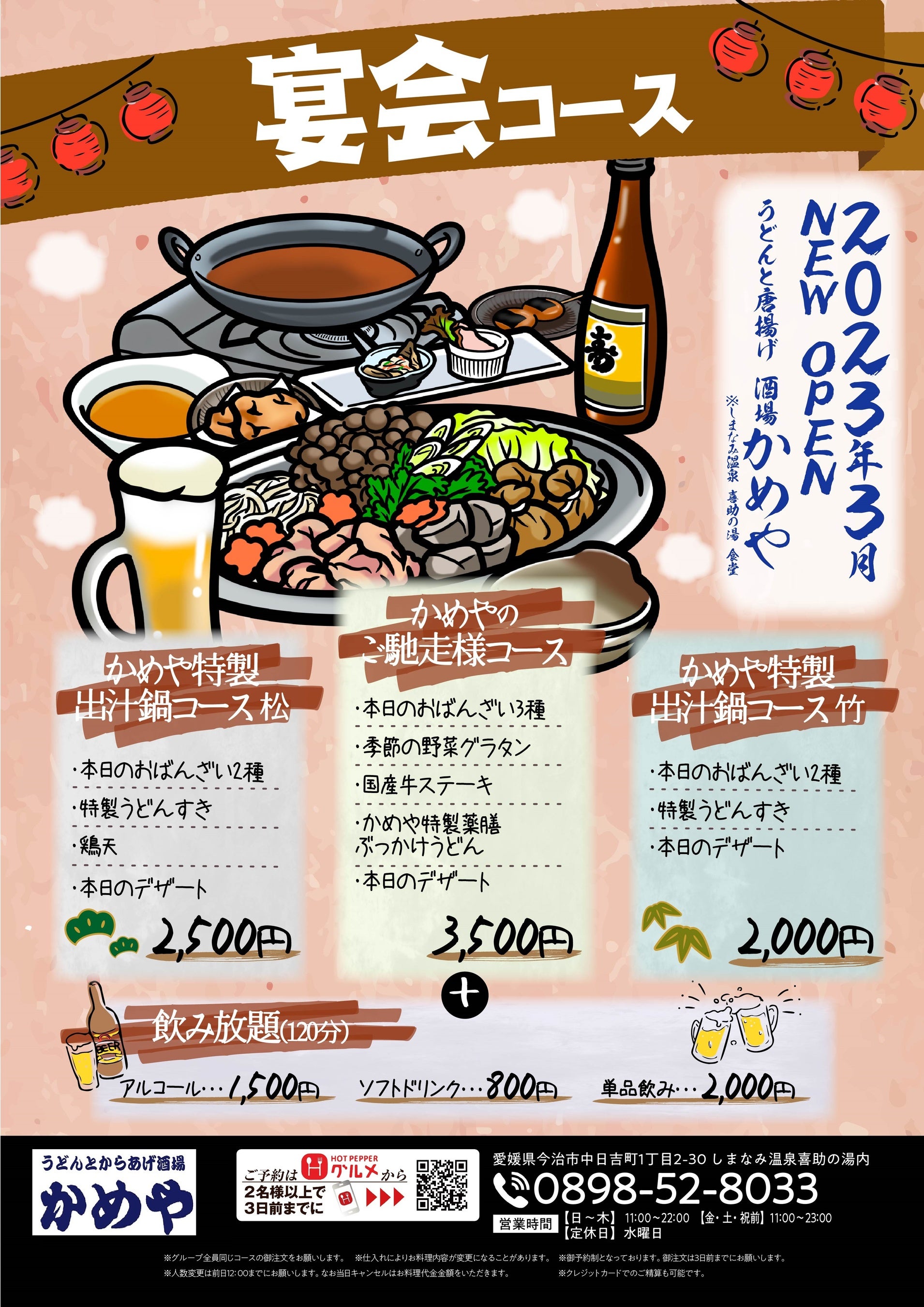 かめや宴会コースを4名&2500円以上のご予約をすると
