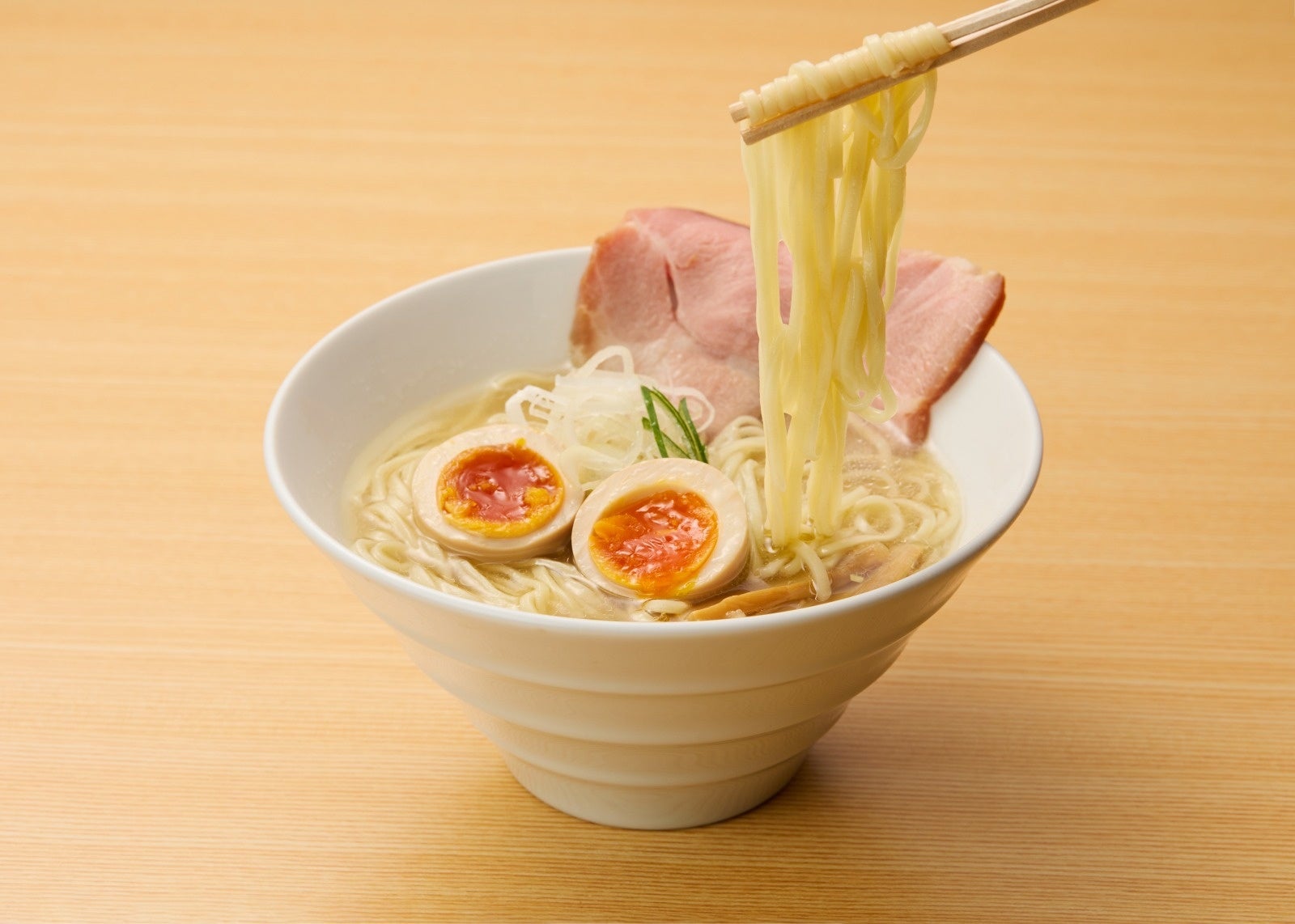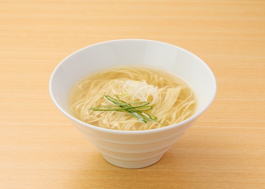 鶏節・利尻昆布・宗田鰹・スルメ・片口鰯などの天然素材からとったスッキリ上品なスープに、海老・あさり・魚醤などを使用し熟成させた塩ダレを加えた、体の芯から温まり朝から活動的な1日を過ごす事のできるらーめんは、麺・スープ・葱という究極にシンプルな形でも十分な食べごたえと多幸感を感じていただけます。