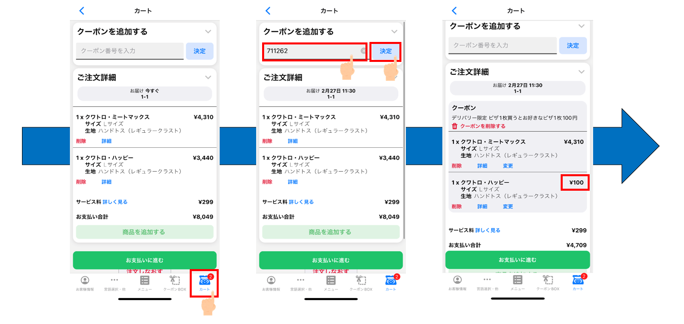 注文方法:ご利用になられたいクーポンを選び、商品をお選びください。もう1品が100円になります。