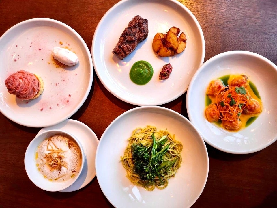 ユニオン スクエアトウキョウは、ニューヨークレストラン界のリーディングカンパニー“USHG”のダイニングカルチャーが感じられるレストランです。知識と経験豊富なスタッフがもてなす活気ある雰囲気の中で、旬の地元食材を活かしたニューヨーク料理を楽しめます。一番のおすすめはワンダーテーブルが子牛の選定からこだわりの肥育方法で育てたいわて山形村短角牛のサーロインステーキです。ジューシーで噛むほどに赤身の美味しさが口の中いっぱいに広がり、後味にいやな脂っぽさが残らない一品です。店内からはミッドタウンの庭園が臨め、時期により桜の鑑賞やイルミネーションを楽しめます。