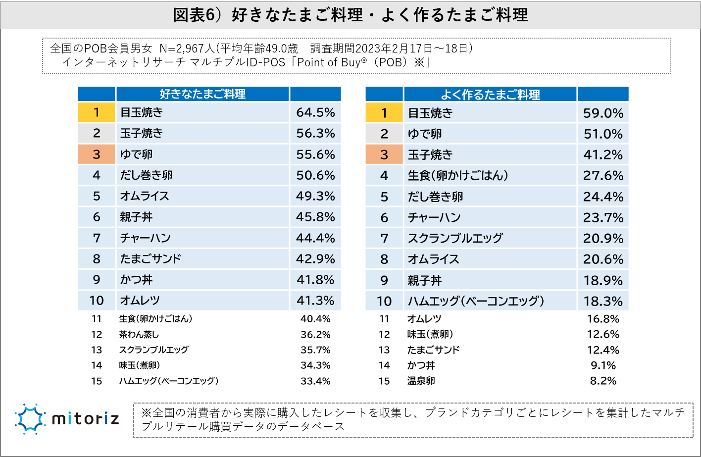 - 好きなたまご料理/よく作るたまご料理は「目玉焼き」がどちらもトップ