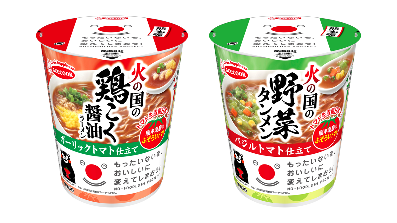 エースコック株式会社(本社:大阪府吹田市 社長:村岡寛)は、2023年2月27日より、「もったいないをおいしいに 火の国の醤油ラーメン ガーリックトマト仕立て/火の国の野菜タンメン バジルトマト仕立て」を新発売します。