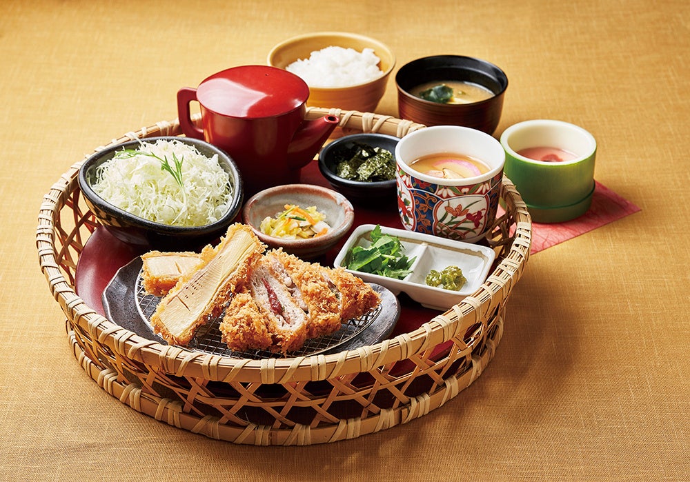 「春の贅沢膳」では、長さ約20cmの国産アスパラガスのシャキッとした歯ごたえが楽しめる“アスパラ肉巻きかつ”や、今が旬の国産のやわらかな筍を使用した“筍の肉巻きかつ”、春の彩りを添える桜エビと甘エビ、バナメイエビを合わせ、つなぎなしで仕上げたプリプリ食感が自慢の“海老かつ”、広島の銘柄豚“瀬戸内六穀豚”を使用した“六穀豚ロースかつ”を贅沢に盛り合わせました。