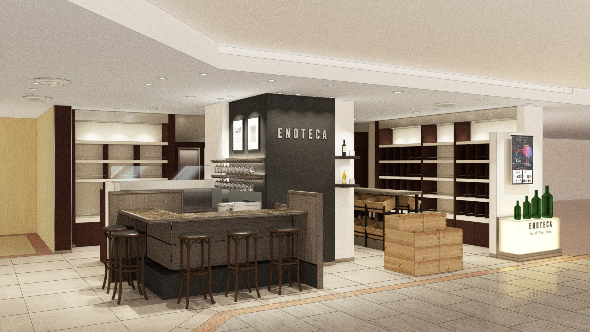 「ワインショップ・エノテカ 高松三越店」は、香川県では初の出店となり、地域のお客さまの日々の生活に密着した店舗を目指します。
