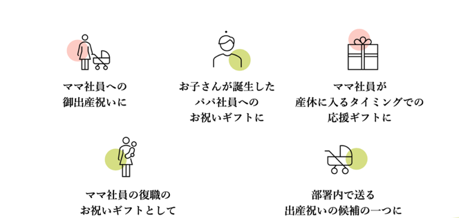 また「momwell for office」は、企業からママ・パパ社員に対して、本商品を出産祝いや育休からの復職時などのギフトとして贈って頂くことができるサービスです。