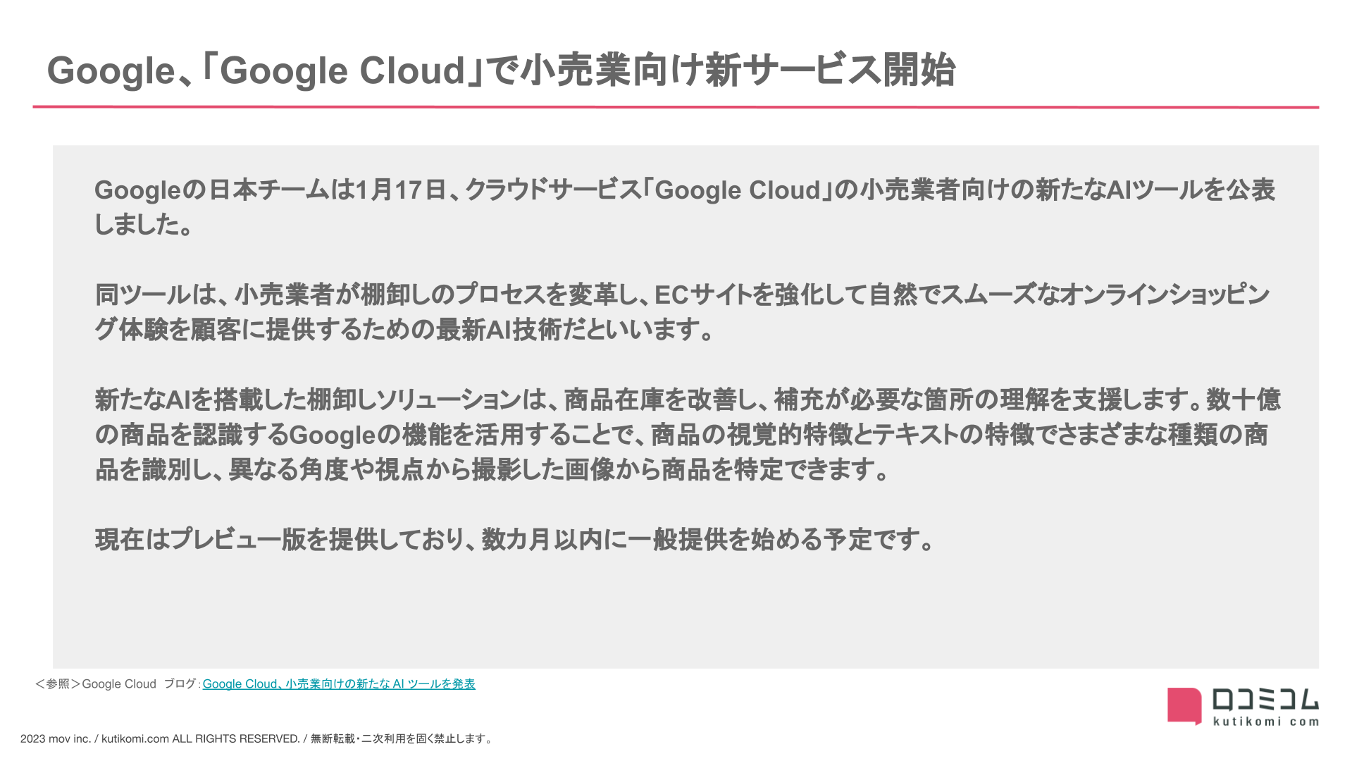 ■ 小売業界動向まとめ:「Google Cloud」小売業向け新サービス / ファーストリテイリング、年収4割引き上げ 他