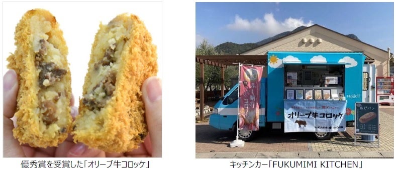 今回、地方食材・調理法部門で優秀賞を受賞した「オリーブ牛コロッケ」は、地産地消をテーマに香川県小豆島の島内をめぐるキッチンカー『FUKUMIMI KITCHEN』で販売している商品です。「オリーブ牛」とは、小豆島の特産物であるオリーブの絞り果実を与えて育てた香川県のブランド牛です。観光客から土庄港観光センターに「オリーブ牛はどこで食べられますか?」といった問い合わせが多いことを知り、商品の考案を開始。「オリーブ牛」の脂の甘味を感じてもらうためにバターを使用せず、甘じょっぱい味付けに仕立てました。今後は『FUKUMIMI KITCHEN』だけでなく、小豆島にて当社が運営する惣菜店『福み味(ふくみみ)』でも販売を行う予定です。