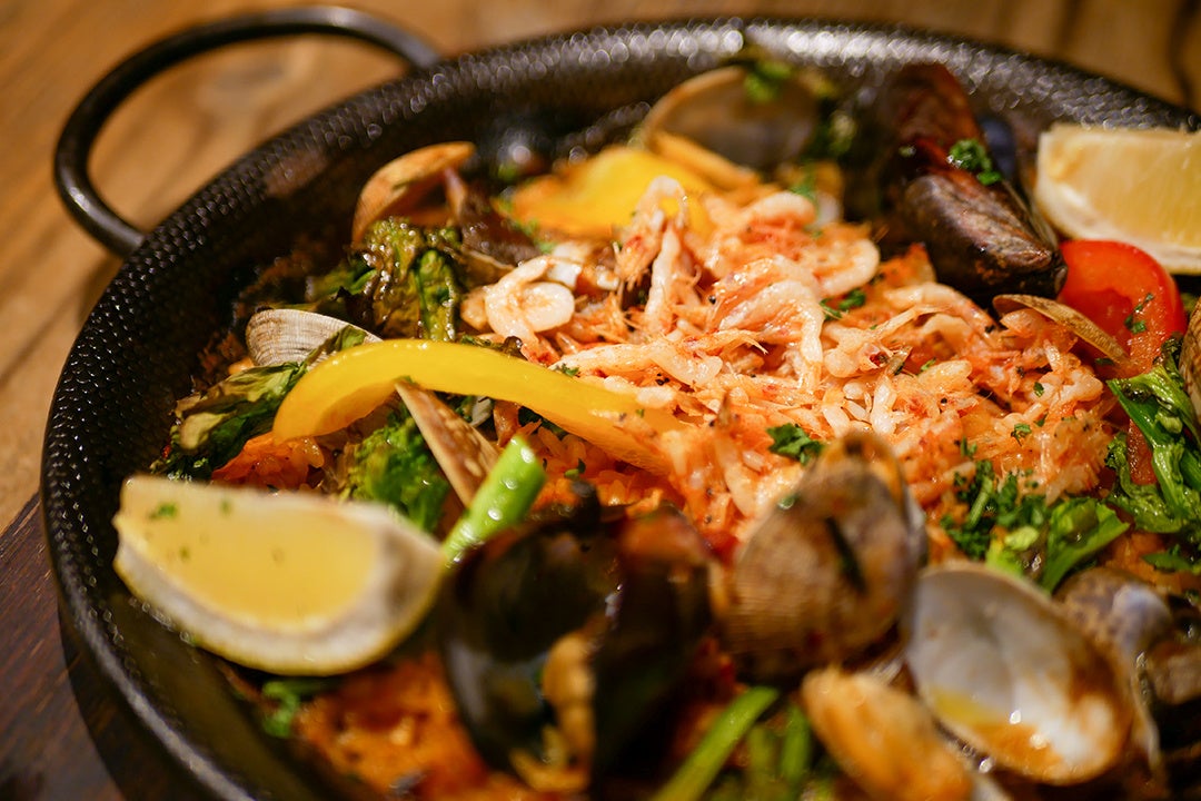 桜海老とアサリ、菜の花の具沢山パエリア ミクスタ