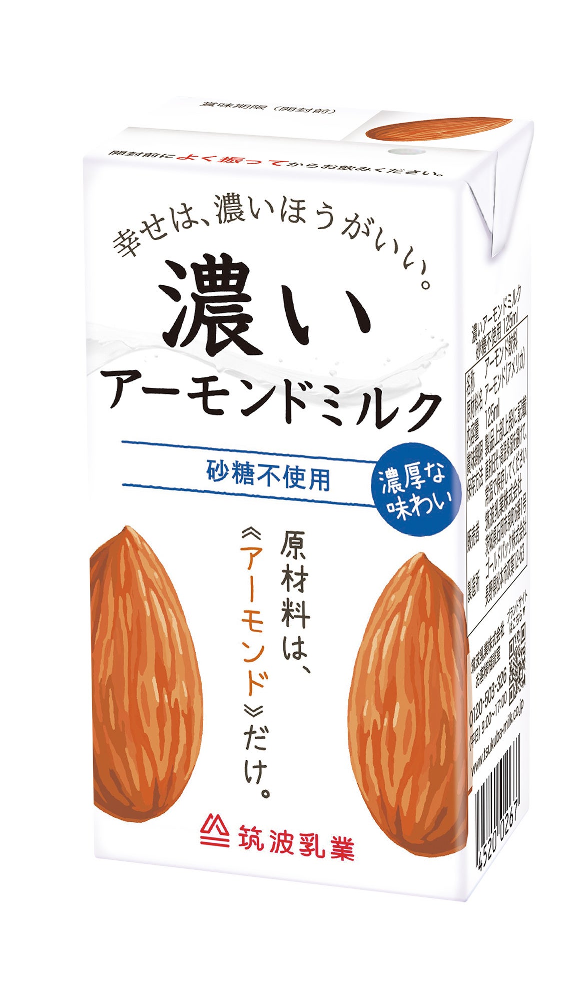 新発売を記念して、「濃いアーモンドミルク たっぷり食物繊維」125mlと「濃いアーモンドミルク 砂糖不使用」125mlを飲み比べられる、送料無料のお試しセットを、公式オンラインショップ限定で販売中です( https://www.tsukubadairy.shop )。