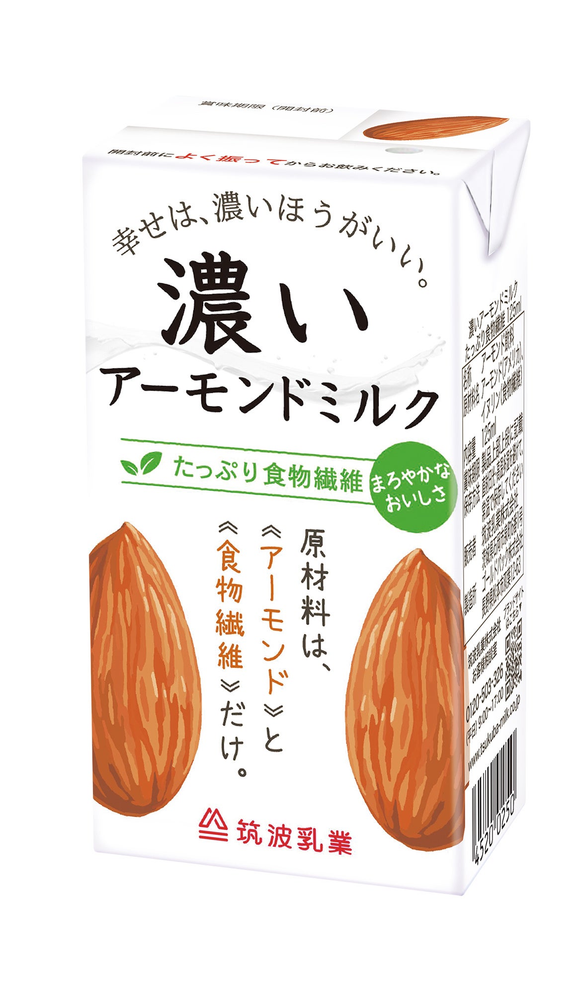 筑波乳業「濃いアーモンドミルク」は、2014年の発売以来、アーモンドの濃さと素材本来の味を大切に、シンプルな原材料にこだわったアーモンドミルクを展開してきました。さらなるおいしさと機能性を追求し、現代人が不足しがちな「食物繊維」を取り入れた新商品「濃いアーモンドミルク たっぷり食物繊維」をラインアップに加え、従来品の「濃いアーモンドミルク 砂糖不使用」とともに、パッケージをリニューアル。からだを大切に思う全てのひとに、毎日幸せを感じていただけるおいしさをお届けしていきます。