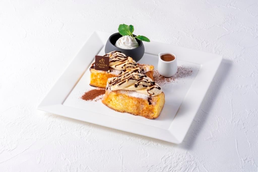 生クリームたっぷりのアパレイユに浸したデニッシュのフレンチトーストバナナにゴディバのダークチョコレートソースを合わせた王道の味わいです。