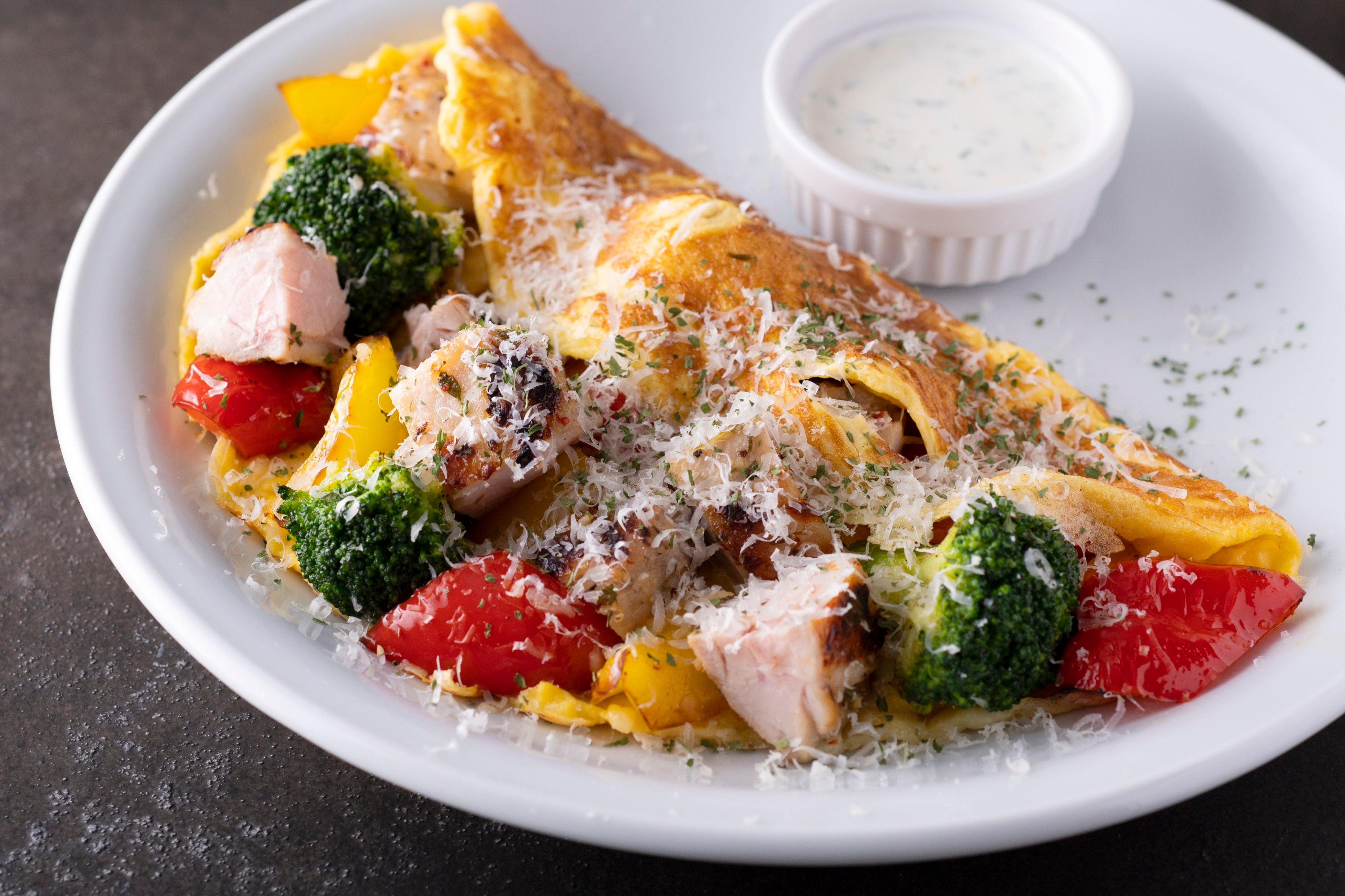 アメリカのソウルフード“デンバーオムレツ”をFOODIES風にアレンジ。たっぷりの野菜を卵で包み自家製のヨーグルトソースを合わせさっぱりとした味わいに仕上げました。