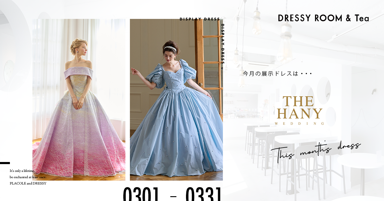「PLACOLE & DRESSY」ブランドを展開する、冒険社プラコレ(本社:神奈川県鎌倉市、代表取締役CEO:武藤功樹)は、ウェディングドレスをもっと身近に、もっと気軽に、体感できる煌めく魔法の場所『お花とドレスと紅茶のお店 DRESSY ROOM&Tea』にて3月は「DESTINY Line」「ACQUA GRAZIE」より THE HANYのウェディングドレスを展示することをお知らせいたします。