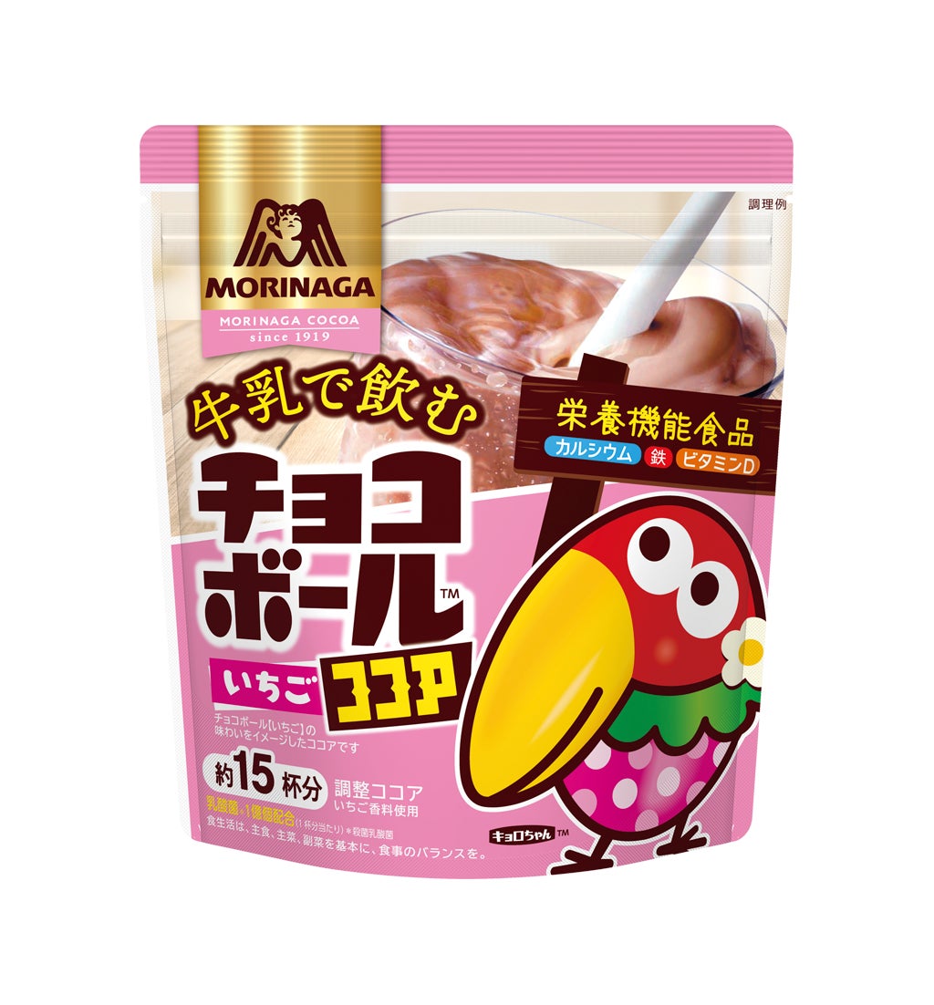 「牛乳で飲むココア<チョコボールいちご>」は、冷たい牛乳にさっと溶けて、1杯(商品12g+牛乳150ml)で1日の1/2量※のカルシウム・鉄・ビタミンDが摂れる、「チョコボール<いちご>」の味わいをイメージしたココアです。昨年3月に発売したところお客様にご好評いただいたため、この度再発売する運びとなりました。
