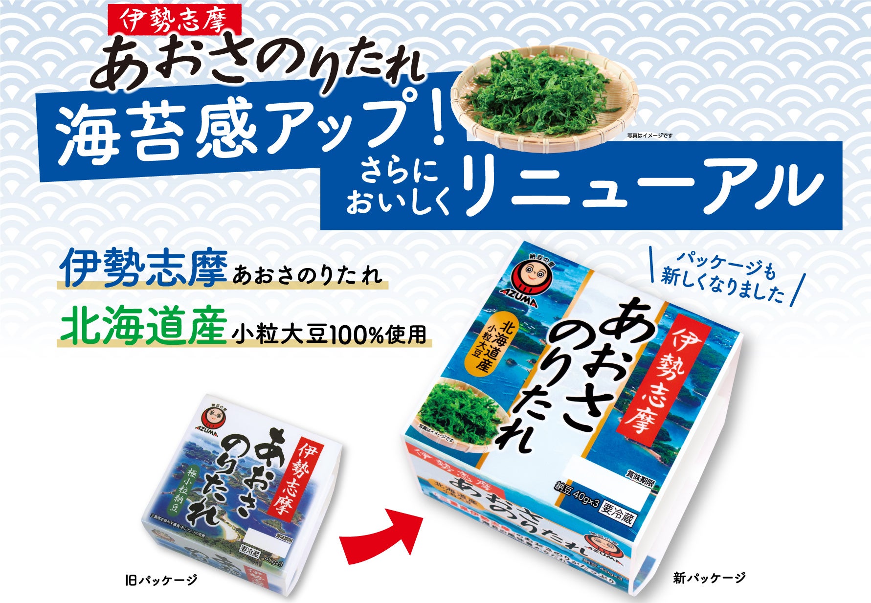 納豆ひとすじ72年、あづま食品株式会社(本社:栃木県宇都宮市、代表取締役社長:黒崎英機)は「伊勢志摩あおさのりたれ」を2023年3月1日よりリニューアル発売いたします