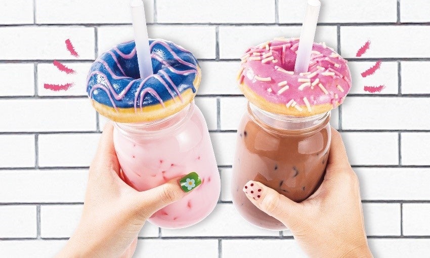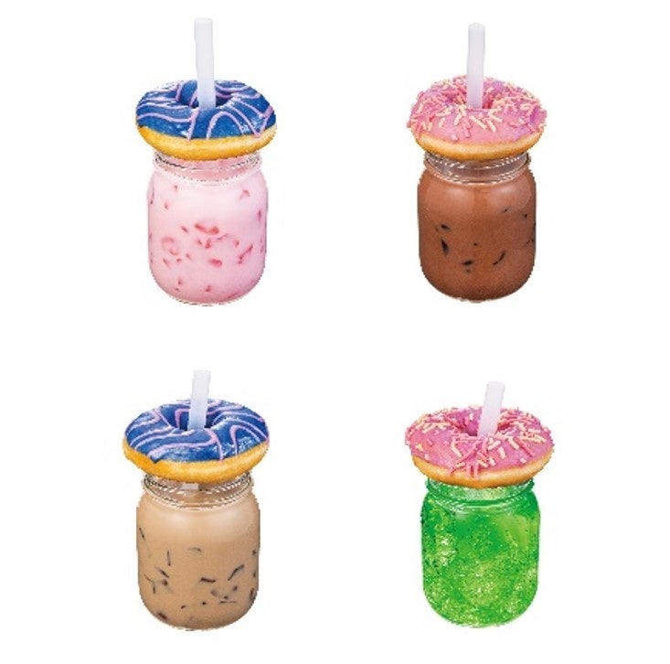 ドーナツドリンク(左上から時計回り:ドーナツいちごミルク/ドーナツココア/ドーナツメロンソーダ/ドーナツカフェオレ)