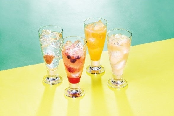 左から:まるで梅酒なノンアルソーダ(梅入り)/ベリーオレンジソーダ/ピーチオレンジジュース/グレフルジンジャーエール