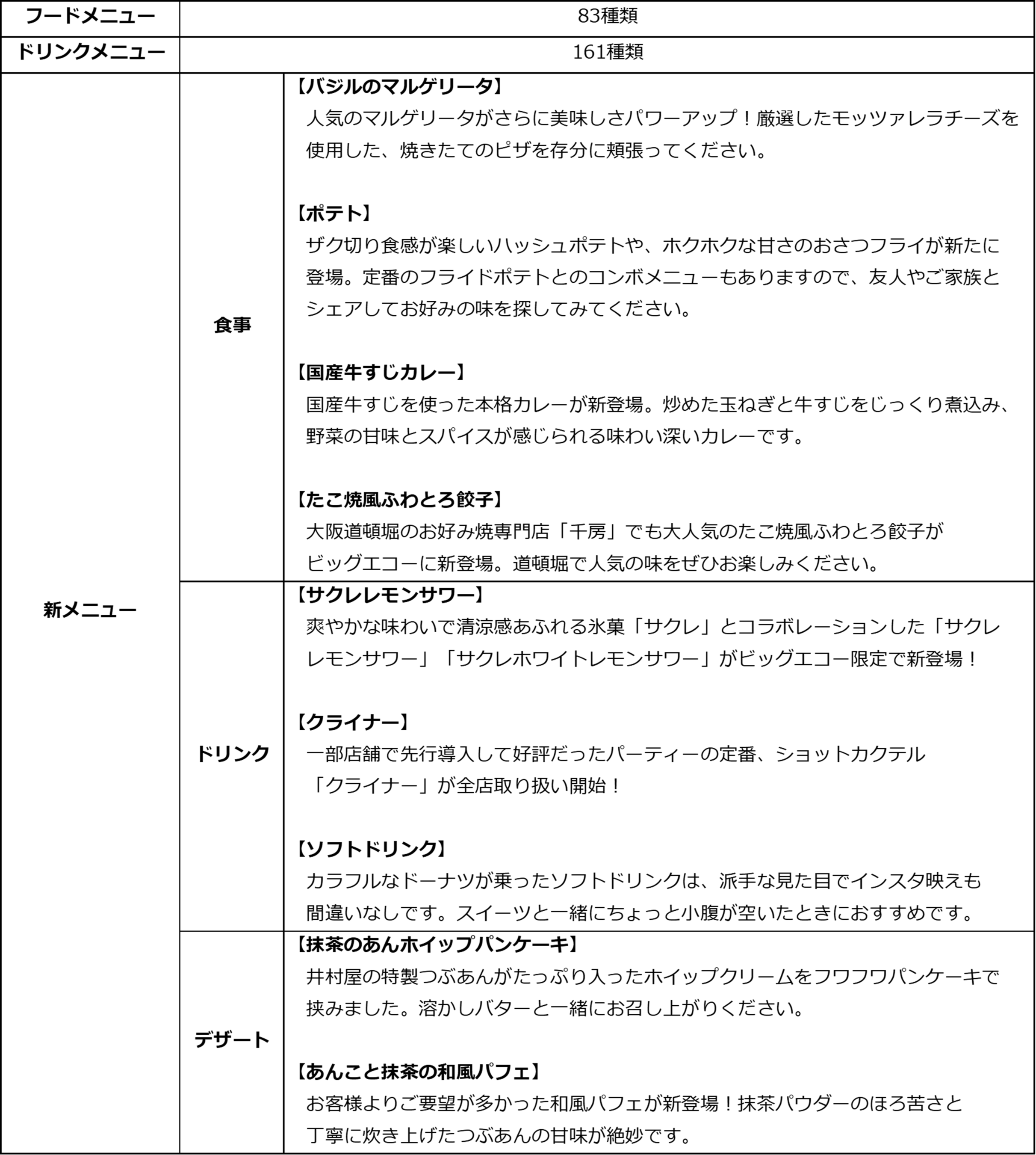 ■関連サイト:ビッグエコー公式 フード&ドリンクメニュー https://big-echo.jp/food_and_drink/