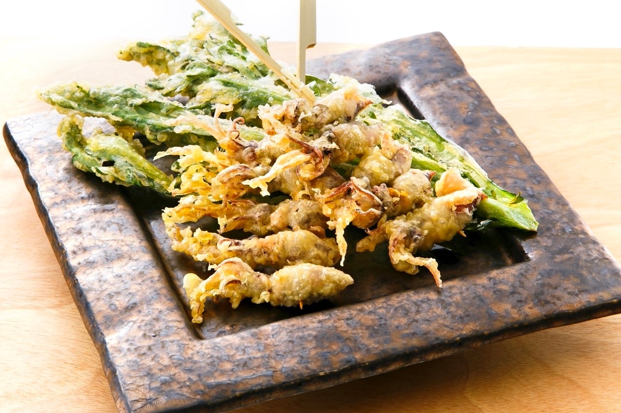 ◆シンプルな天ぷらだからこそ味わえる、ホタルイカの旨味!香り豊かな春菊の天婦羅と一緒に♪