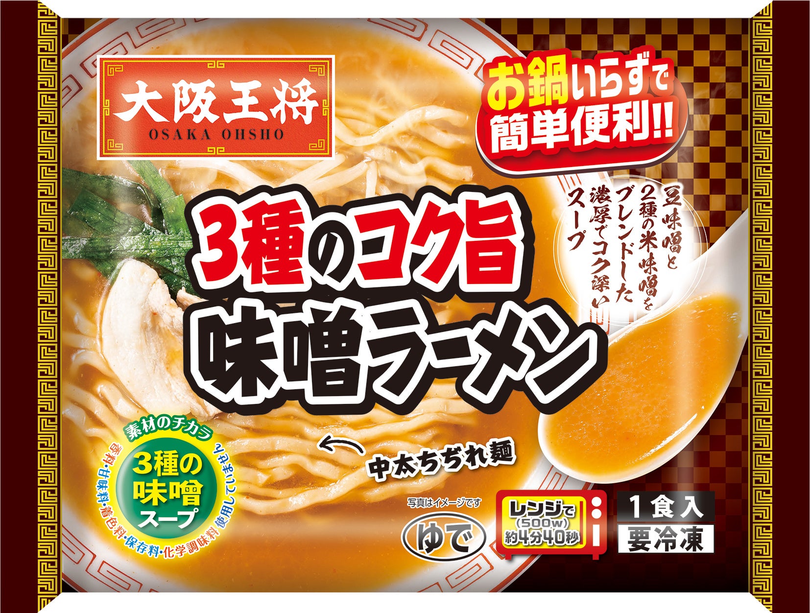 濃厚なスープがしっかり絡むよう、中太ちぢれ麺を使用。「お鍋いらず」で調理も簡単です。