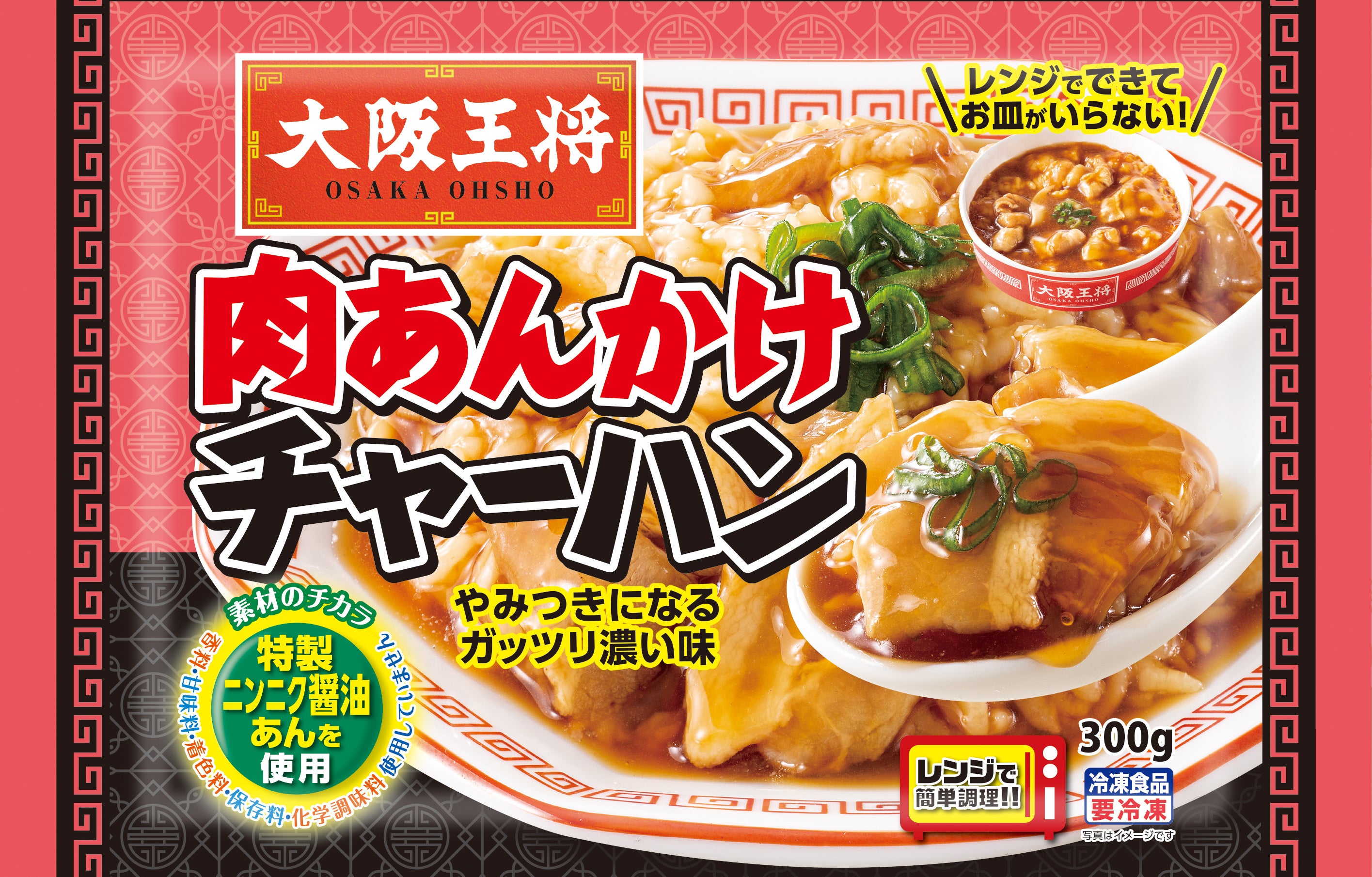 【特徴】餡のオイスターソースを1.5倍に増量し、コク旨仕立てにリニューアル。大阪王将店舗と同じ8種の彩り具材を使用。