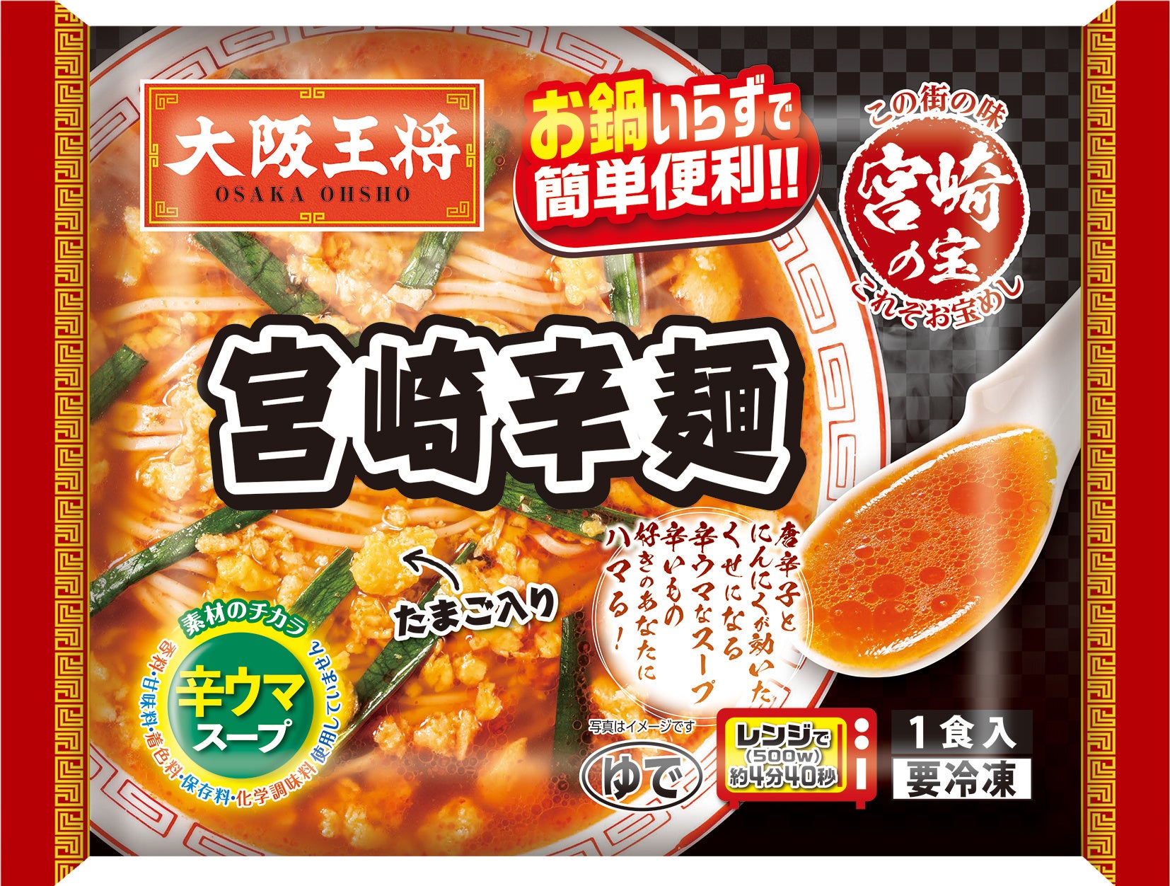 【特徴】“辛旨”なスープで知られる「宮崎辛麺」を冷凍食品で再現しました。