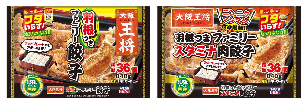 食卓に冷凍餃子があがる頻度が高くなり、冷凍餃子をまとめ買い・ストックするご家庭が増えてきています。そこで、羽根つき餃子が50個入った『羽根つきパーティー餃子』に加えて、36個入りの『羽根つきファミリーシリーズ』を新発売。ストックに便利なチャック付袋です。