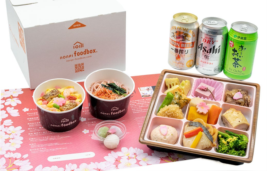 料理と飲み物を詰めたフードボックスを全国にお届けする「nonpi foodbox™」は、昨年6,000個以上販売し大好評となったお花見プランの2023年版を、2月27日に発売しました。1箱には1人前の料理と飲み物が同梱されているため、届いたセットを公園に持っていくだけで気軽にお花見が楽しめます。