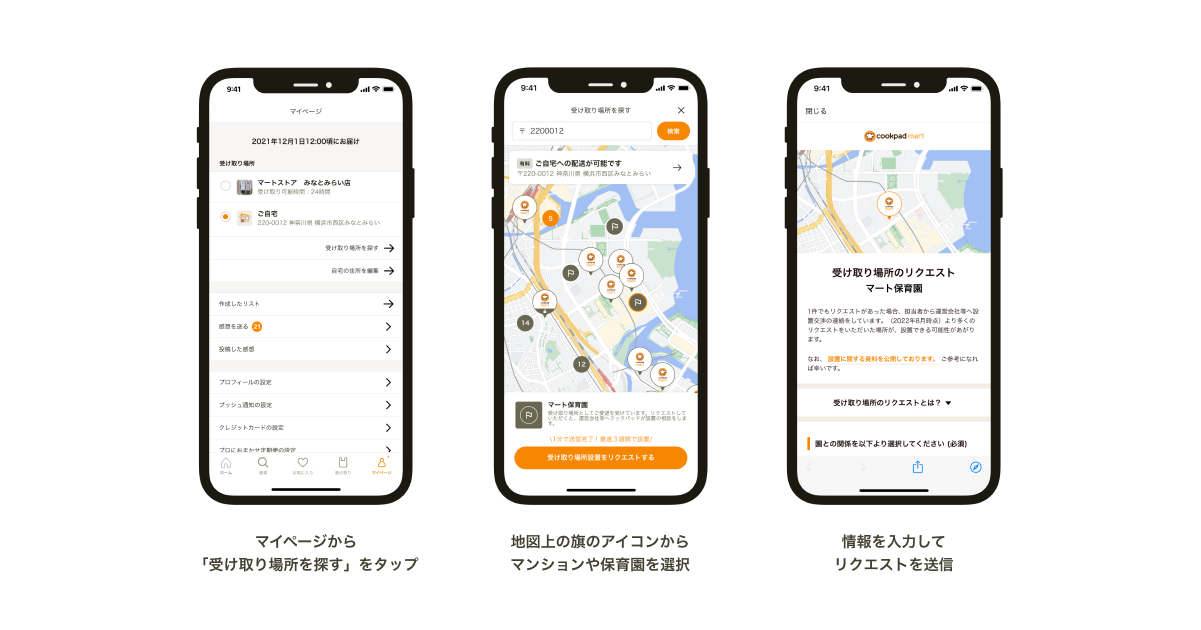 ・設置リクエスト受付ページ(マンション・保育園対象):https://cookpad-mart.com/features/71