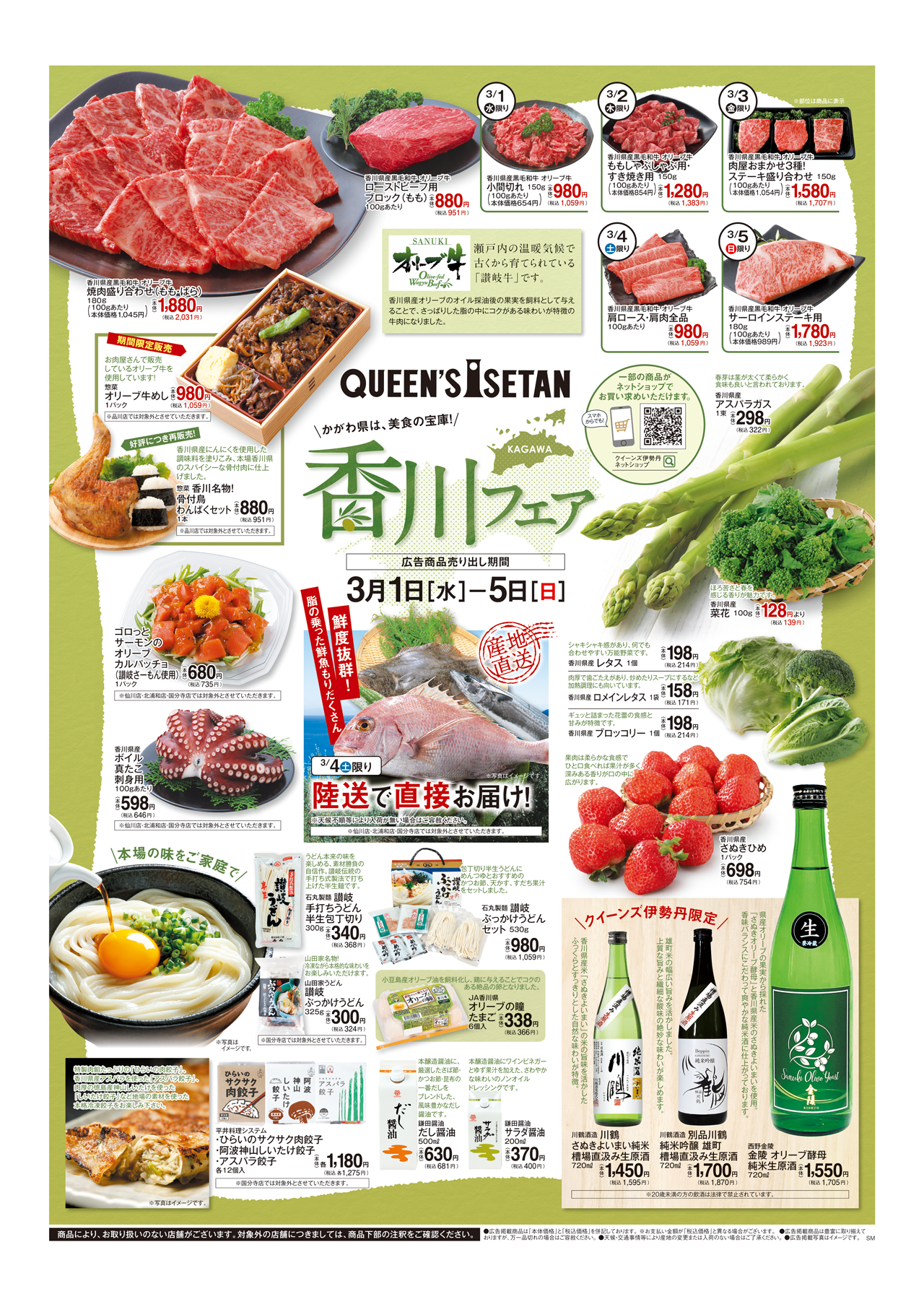 クイーンズ伊勢丹は香川県のご協力のもと「香川フェア」を3月1日(水)~3月5日(日)期間限定で開催いたします。