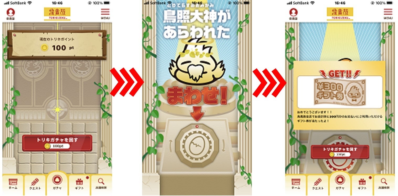 ②「トリキルーレット」と「クエスト」で貯めたポイントで「ガチャ」を回してギフト券をゲット!
