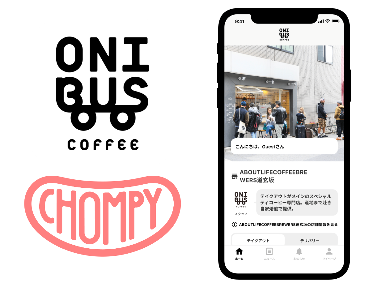 All in One モバイルオーダーサービス「Chompy(チョンピー)」を提供する株式会社Chompy(本社:東京都目黒区、代表取締役:大見周平)は、株式会社ONIBUS(本社:東京都目黒区)が、2023年3月1日から、「ONIBUS COFFEE」の「ONIBUS COFFEE 奥沢」「ONIBUS COFFEE 八雲」「ABOUT LIFE COFFEE BREWERS道玄坂」の3店舗にて、当社が提供する「ONIBUS COFFEE」公式アプリが導入・運用開始されることをお知らせいたします。