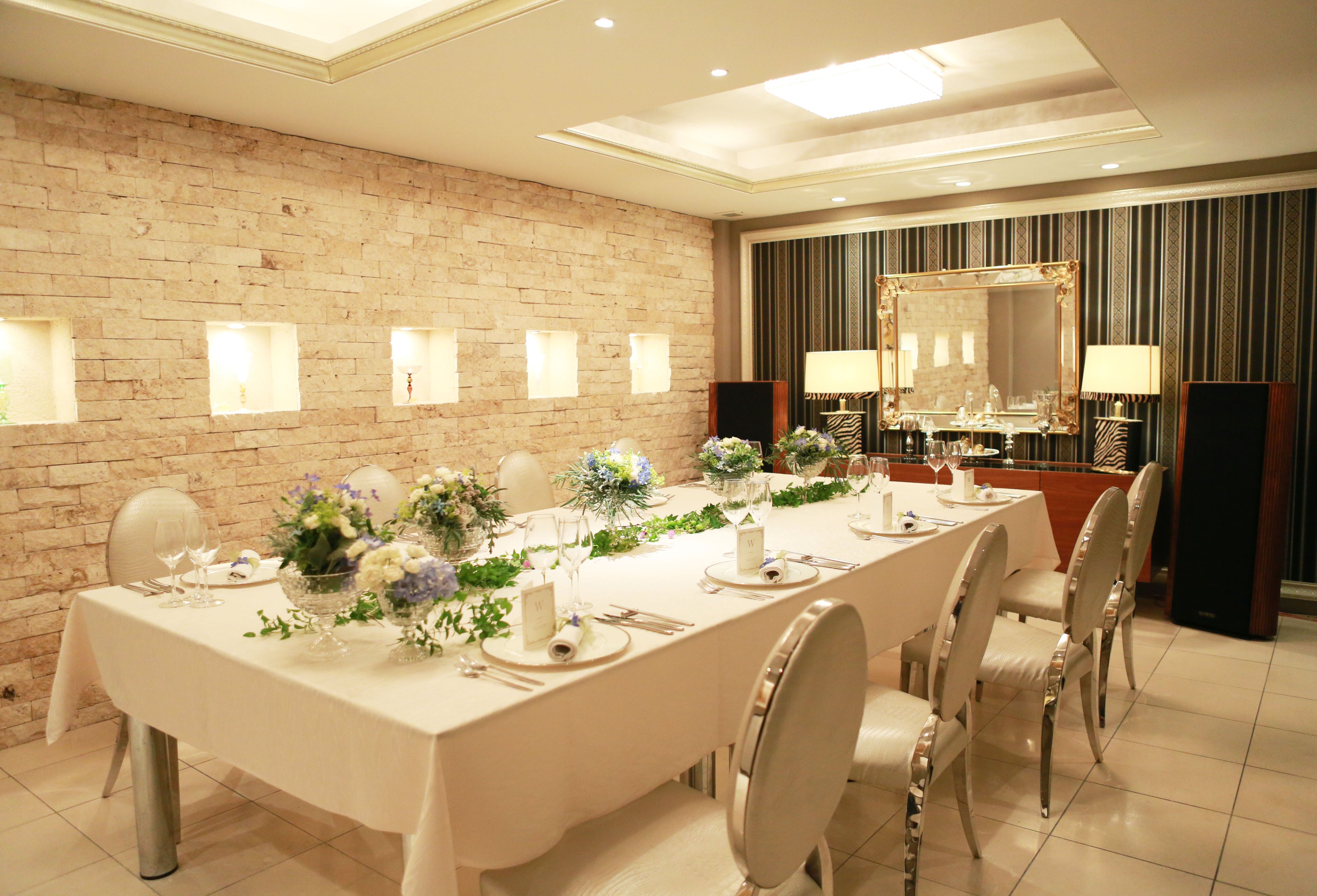 重厚な調度品が随所に飾られたぬくもりあるプライベート空間では6~12名の少人数ウエディングや、ご家族の会食・結納の場としてもご利用いただけます。