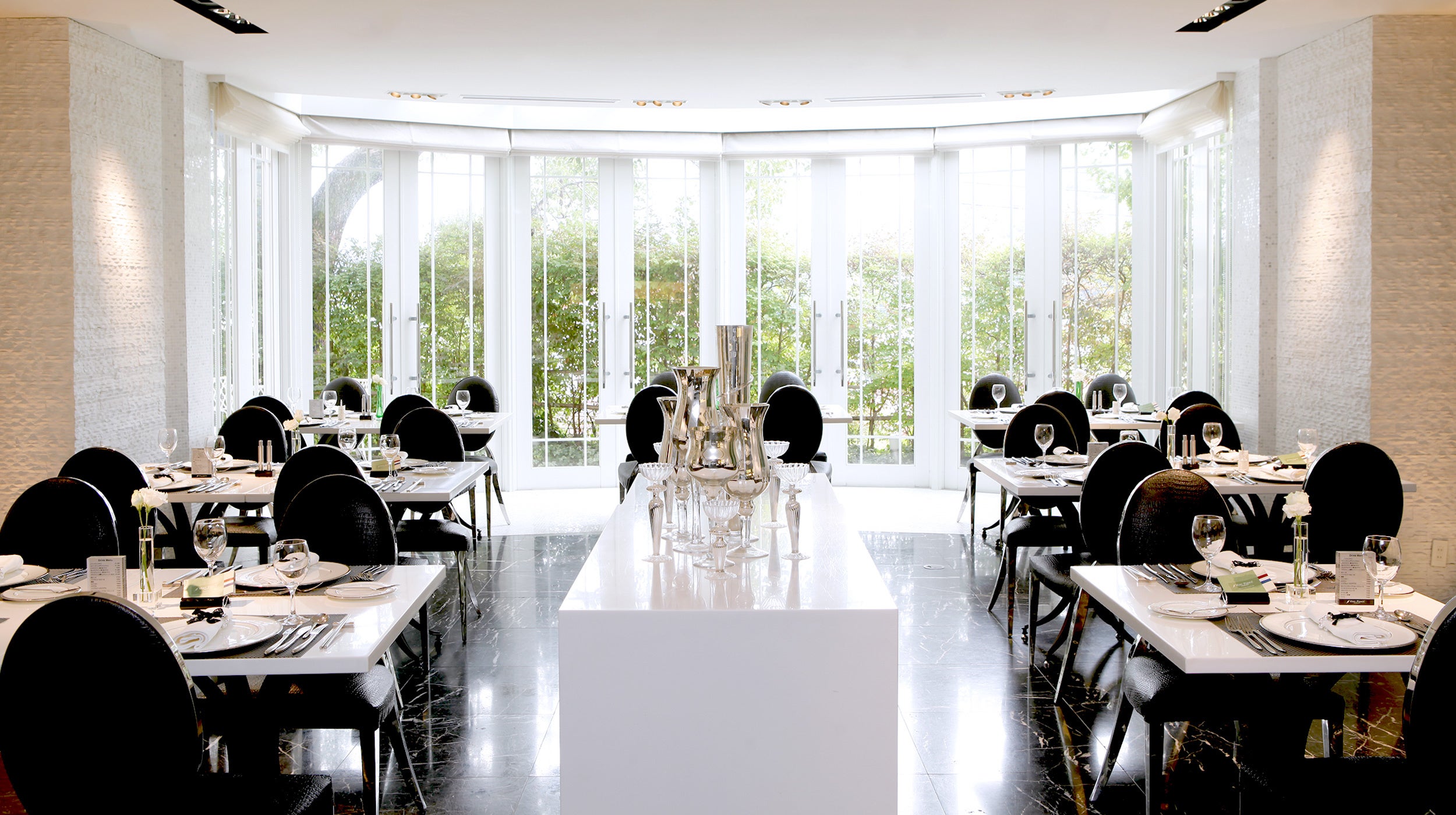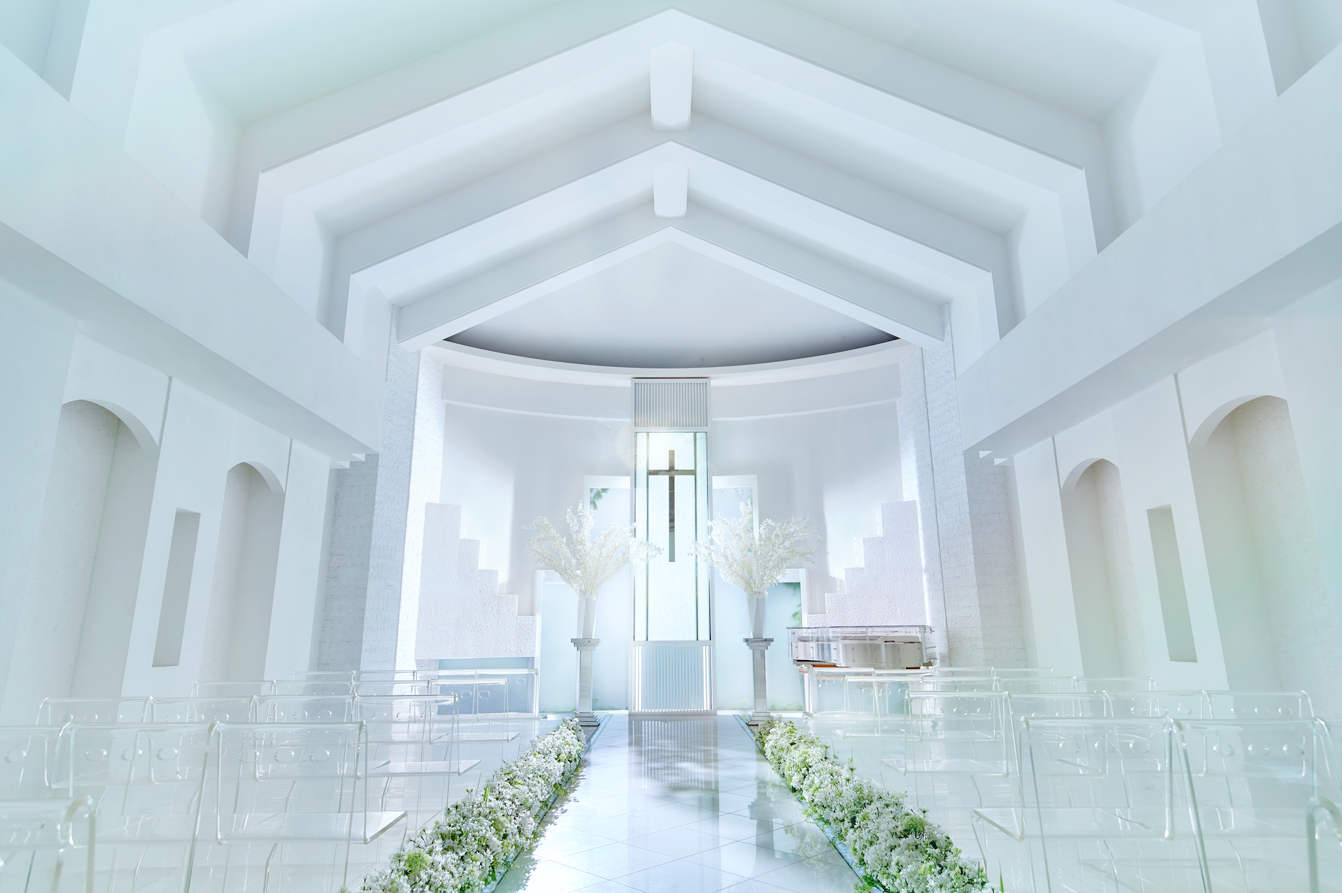 「まっしろな雪」という意味をもつチャペルは透明な光に満たされ、宝石のような輝きをはなつ神聖な空間を演出します。大理石で作られた純白のバージンロードや、クリスタルのグランドピアノなど「白」を基調としたクリアな空間で、結婚式や音楽会など幅広いシーンに合わせてご利用いただけます。