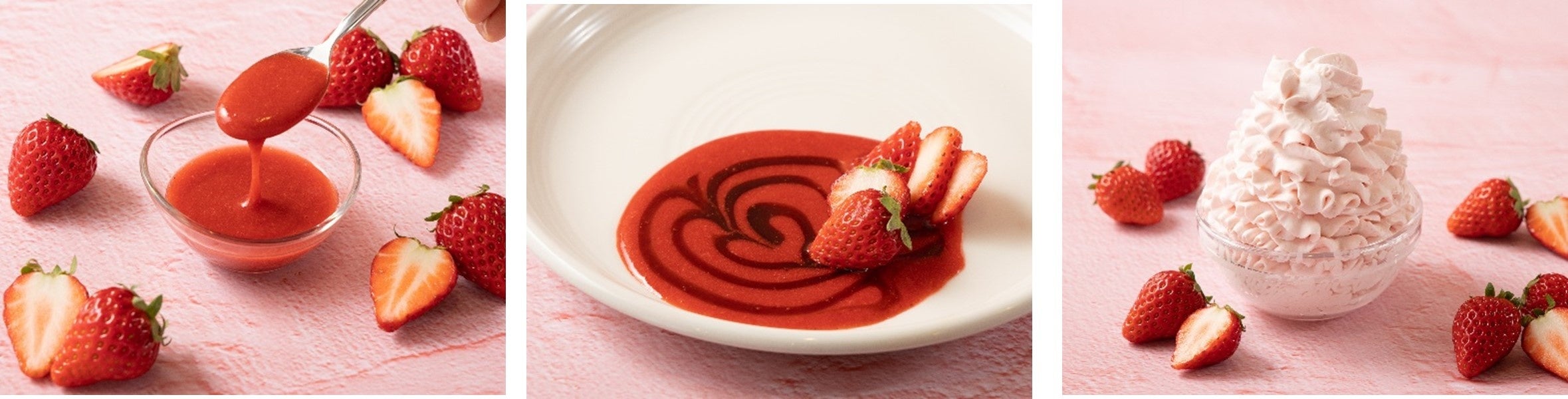 ② フレッシュないちごを100%使用したオリジナルの「ストロベリーソース」