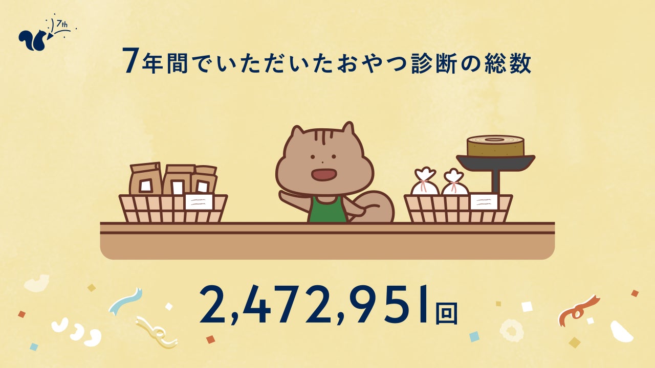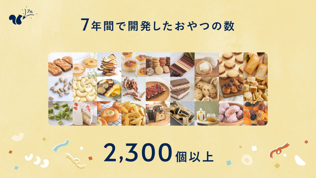7年間で開発したおやつの数は2,300個以上、みなさまにおやつ診断を体験していただいた回数は約250万回に上ります。