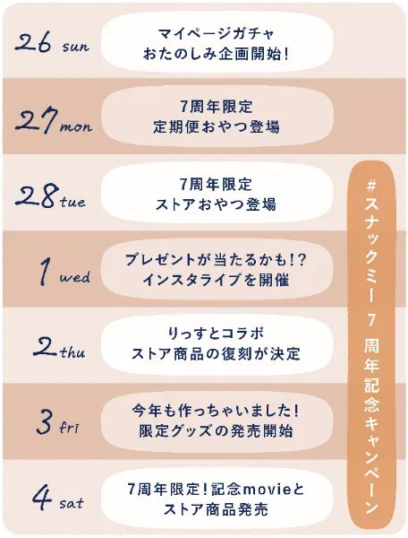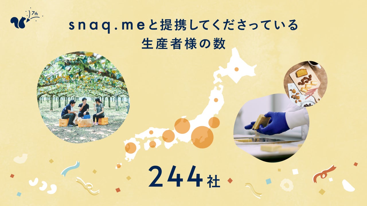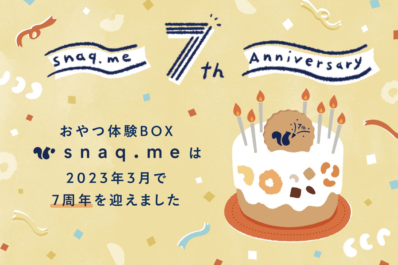 株式会社スナックミー (本社:東京都中央区 / 代表取締役:服部慎太郎)は、2023年3月におやつ体験BOX「snaq.me」の正式リリースから7周年を迎えました。7周年を記念し、「snaq.me」のこれまでがわかるデータで振り返っていきます。