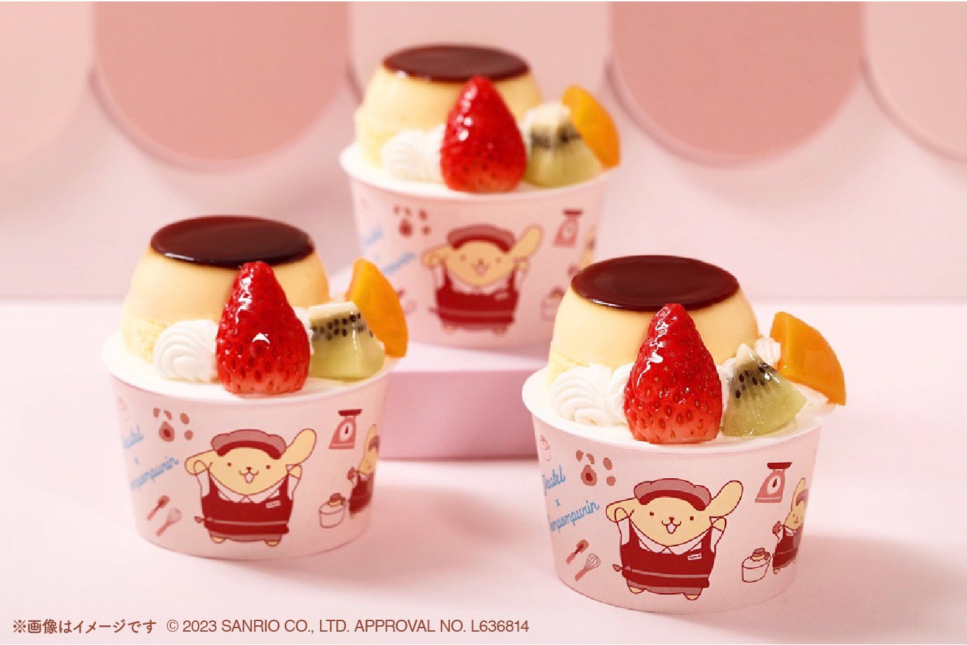 今回のコラボのテーマは、”ポムポムプリンのプリン屋さん”。「手作りのプリンでみんなを幸せにしたい」というポムポムプリンの願いをコンセプトにしたスイーツをご用意いたしました。