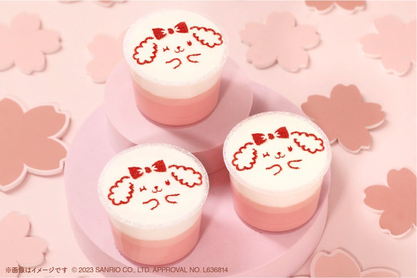 | ●ポムポムプリンのミニさくらプリン ・販売価格:1個;460円(税込) ・販売期間:2023年3月15日(水)~2023年4月30日(日) |