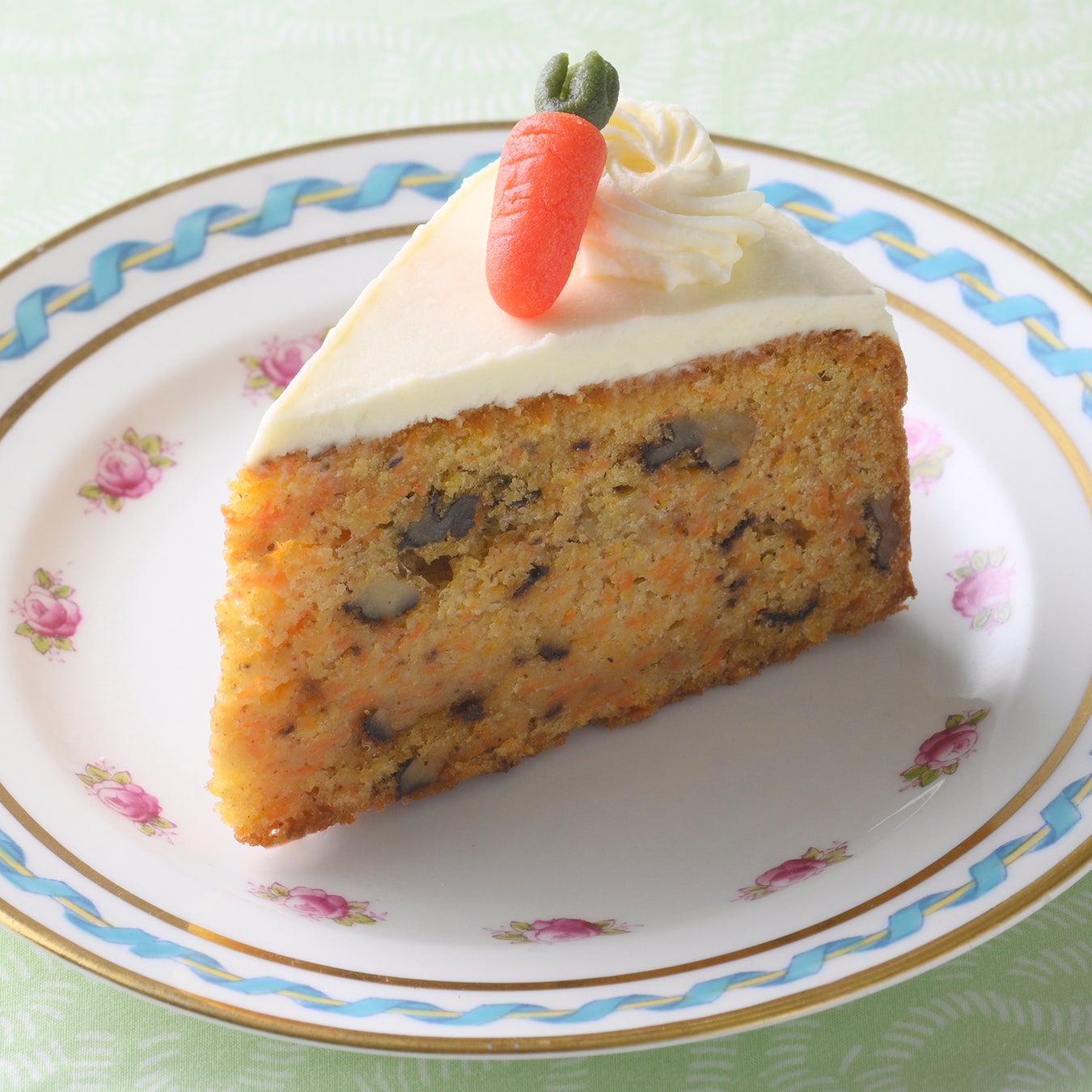 2002年創業の東京・日暮里にある「紅茶教室」「紅茶&英国菓子 専門店」の<Cha Tea 紅茶教室> 。丁寧にすりおろしたニンジン とクルミをたっぷりと使った食感豊かなキャロットケーキです。ほのかに香るスパイスの風味もお楽しみください。手作りのマジパンで作ったニンジンは、見た目も愛らしく食べてもおいしいです。