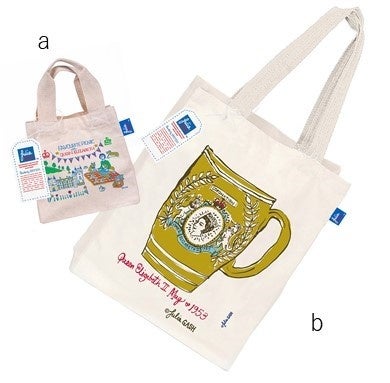 b.ショッピングバッグ(大)エリザベス女王陛下ティーマグ柄 ナチュラル 3,630円