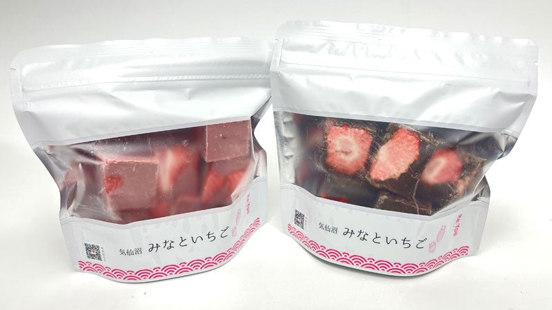 「気仙沼みなといちご」は規格外のいちごをフリーズドライ化し、未利用で上質素材のチョコレートと合わせブロック状にすることで、いちごの形をポジティブに活かしたメッセージ性のある商品となっています。