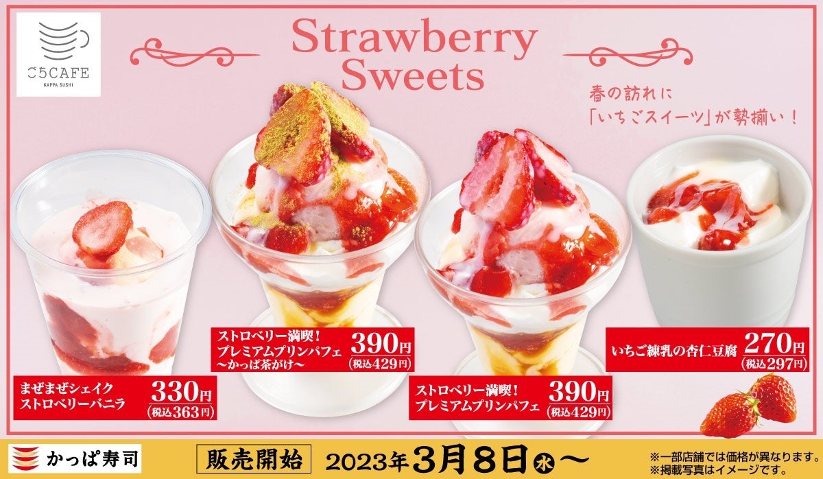 コロワイドグループのかっぱ寿司(カッパ・クリエイト㈱ 本社:神奈川県横浜市)は、2023年3月8日(水)~3月28日(火)の期間、かっぱ寿司のスイーツブランド「ごちCAFE」より「Strawberry Sweets」を発売いたします。