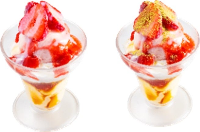 人気のプレミアムプリンやざくざく食感のフルーツグラノーラ、果肉入りストロベリーソース、ホイップクリーム、ストロベリーアイスなどを盛り合せた、様々な素材と甘味と酸味が絶妙なハーモニーを奏でるパフェです。