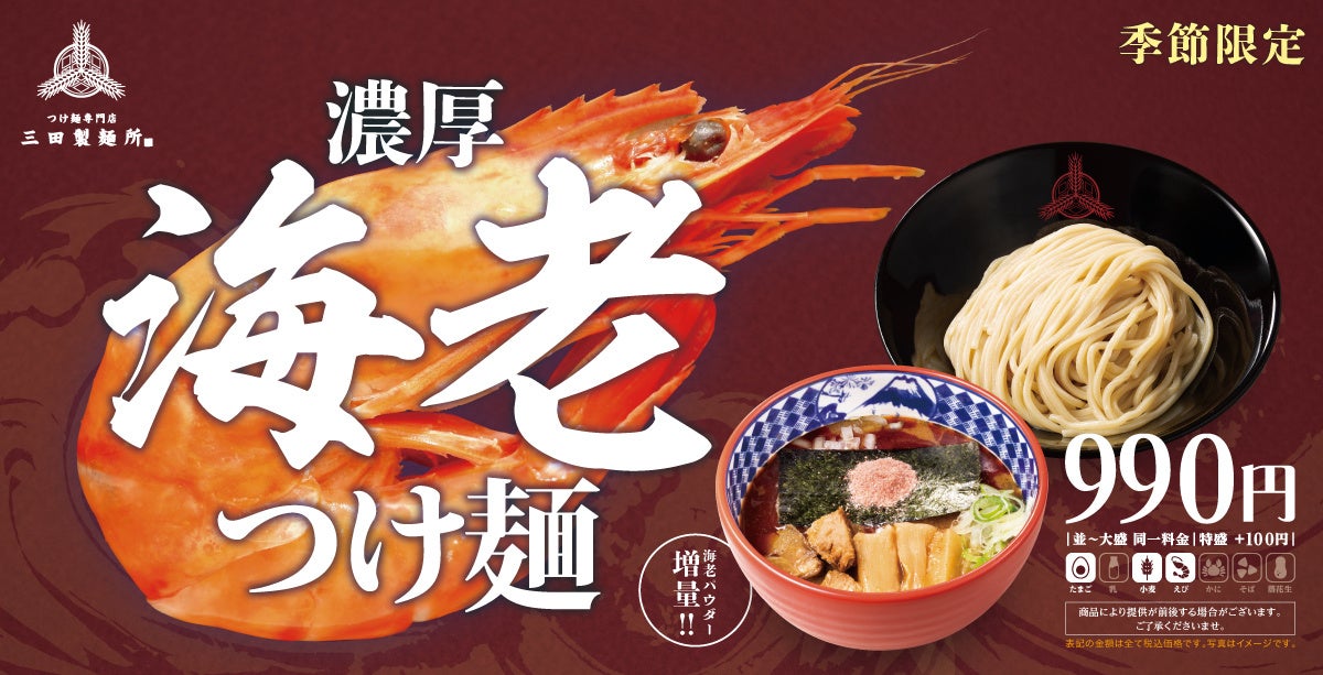 2023年3月7日(火)より、株式会社エムピーキッチン(本社:東京都渋谷区、代表取締役:村上竹彦)が運営する「つけ麺専門店 三田製麺所」は、春季限定商品『濃厚海老つけ麺』を販売致します。