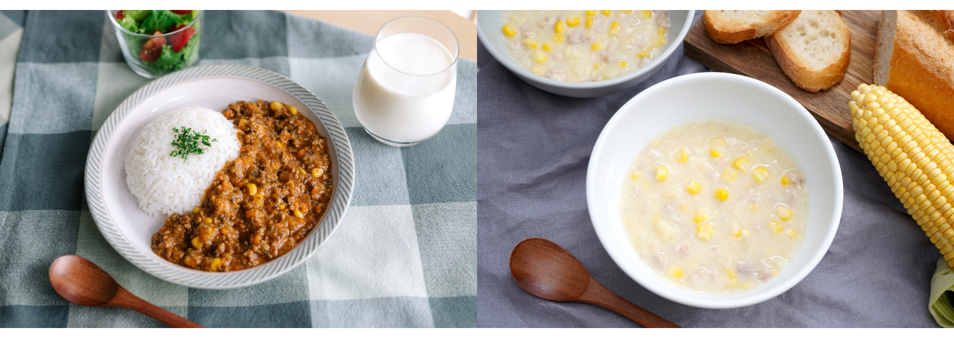 和風味のミニ丼新シリーズに加え、すでに発売中の商品をさらに「便利」と感じていただけるよう、大人気キーマカレーやとうもろこしシチューからもミニサイズが登場しました!